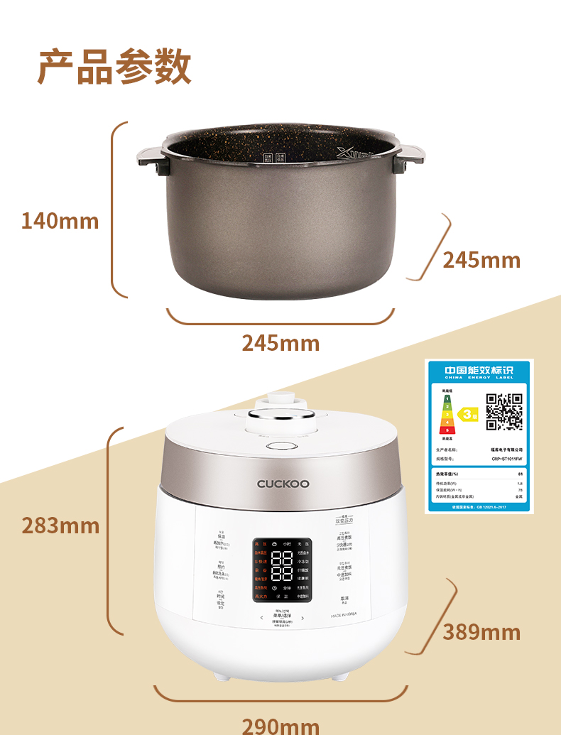 韩国CUCKOO/福库 CRP-ST1011FW 多功能压力电饭煲
