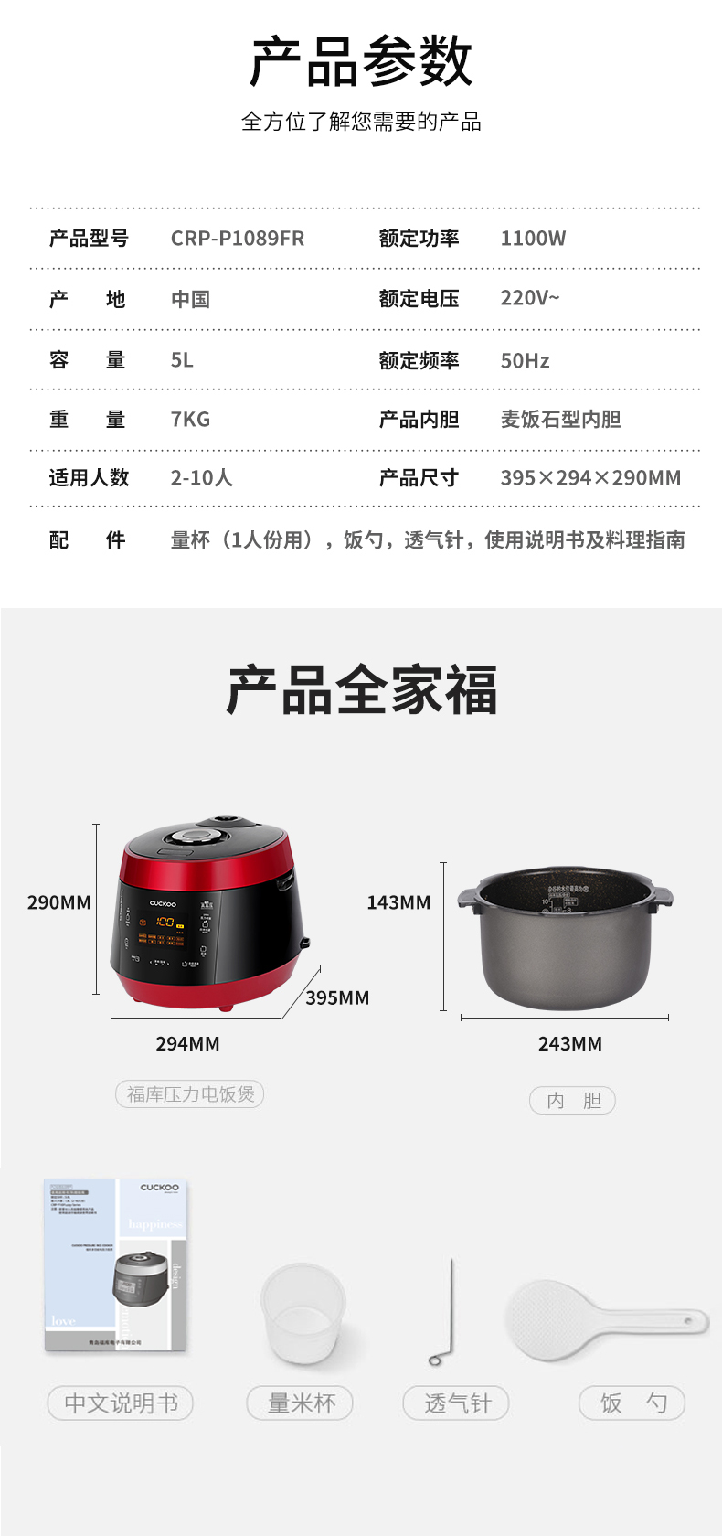 韩国CUCKOO/福库 CRP-P1089FR 多功能压力电饭煲