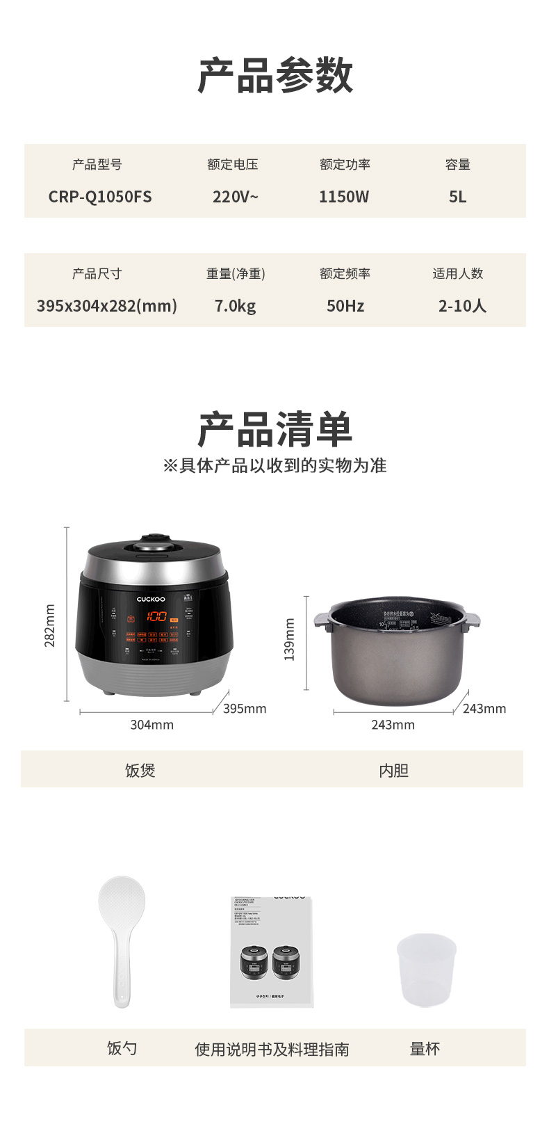 韩国CUCKOO/福库 CRP-Q1050FS 多功能压力电饭煲