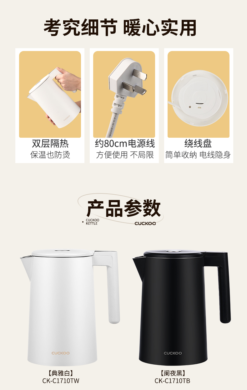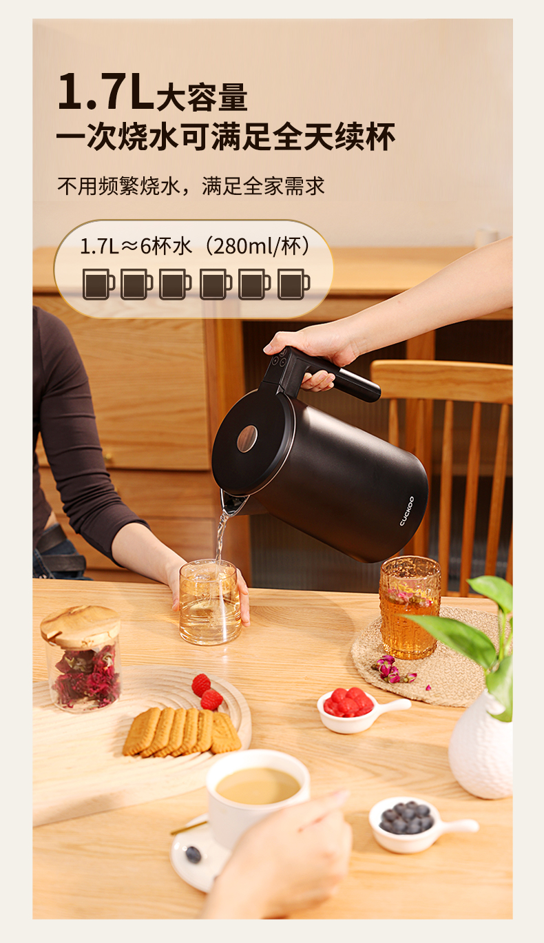 CUCKOO福库大容量电热水壶长效保温智能控温CK-C1710TB