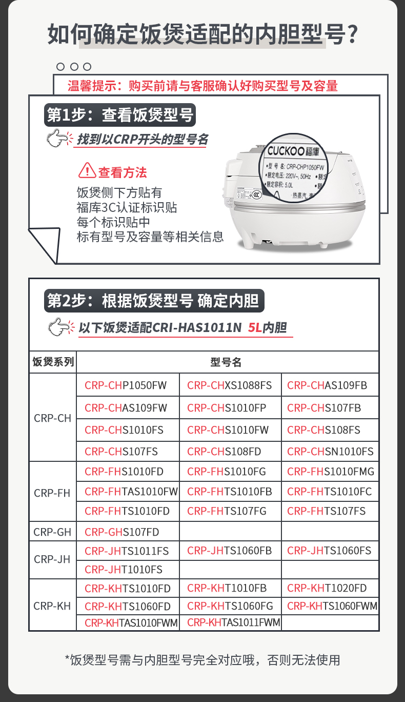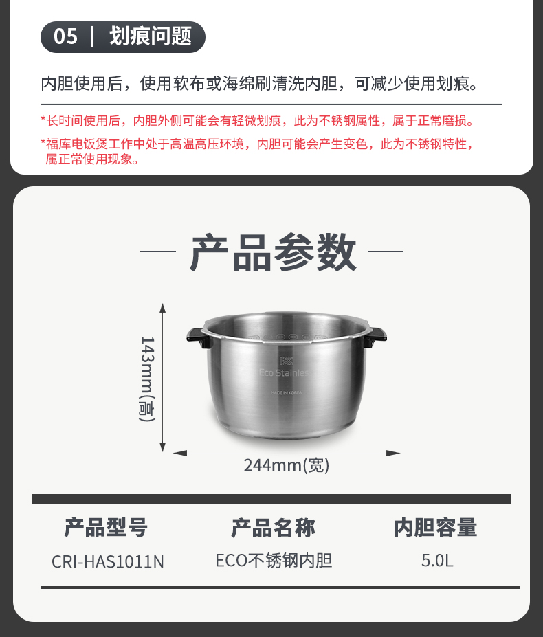 韩国CUCKOO/ CRI-HAS1011N 零涂层 ECO不锈钢内胆 5L专用内胆