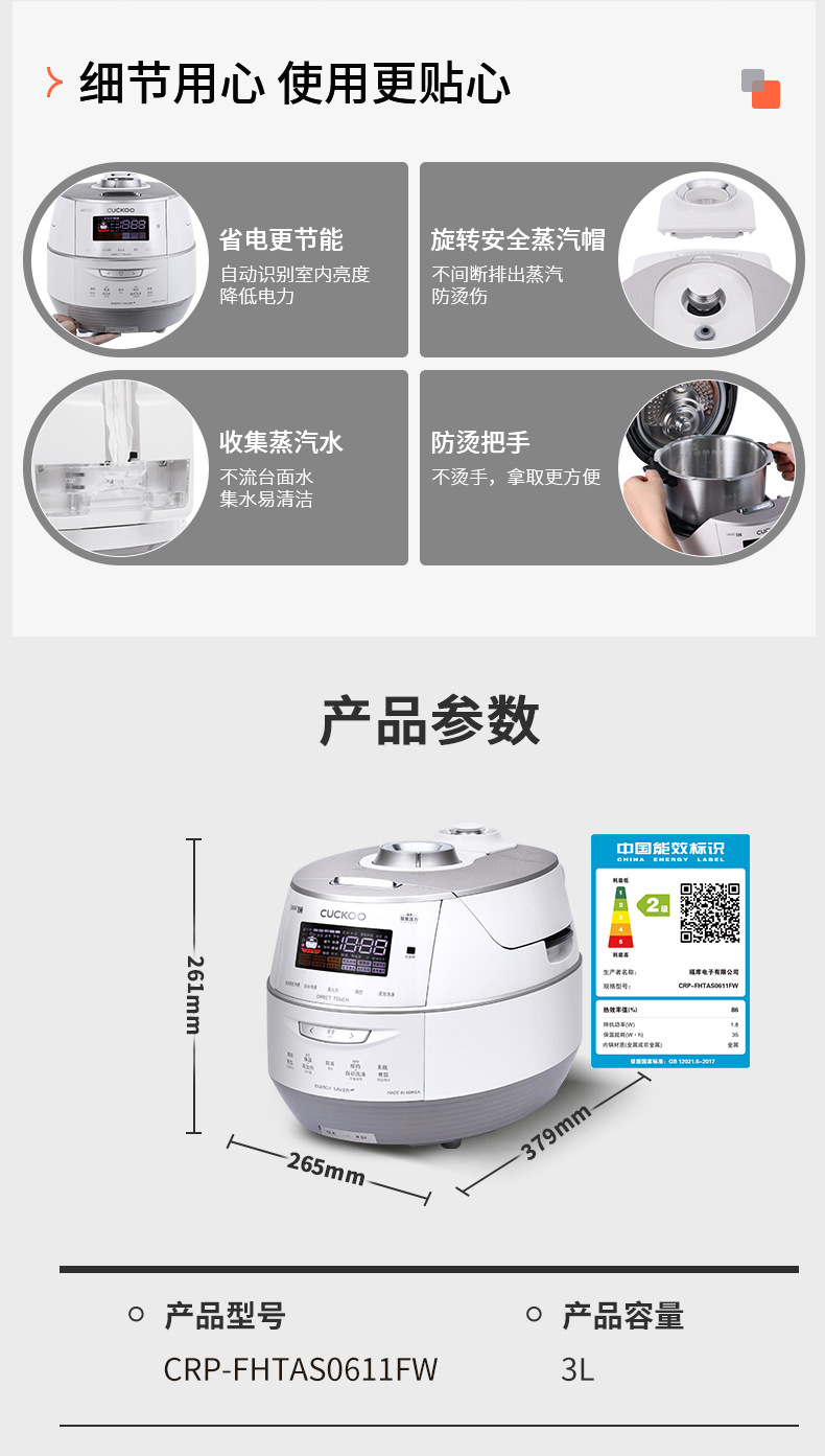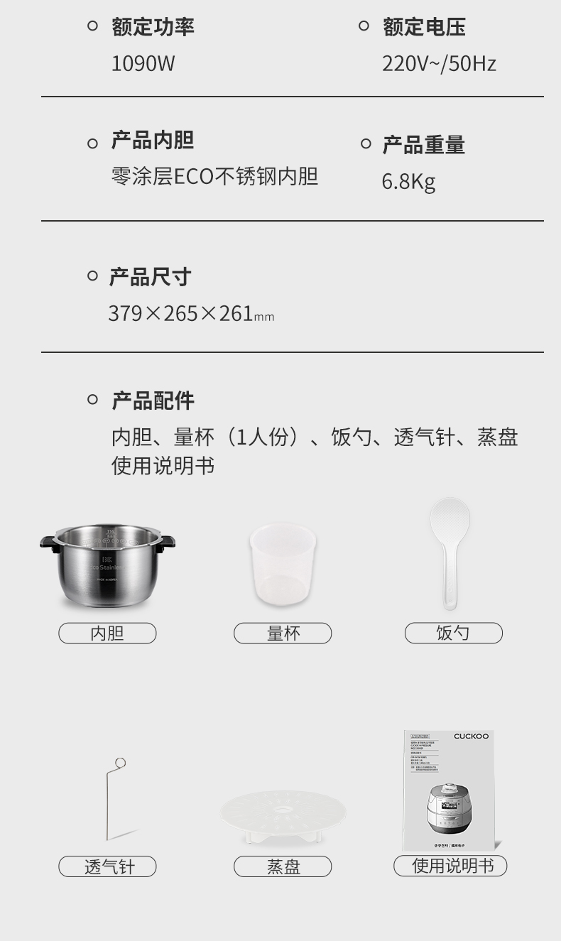 韩国CUCKOO/福库 CRP-FHTAS0611FW 多功能压力电饭煲