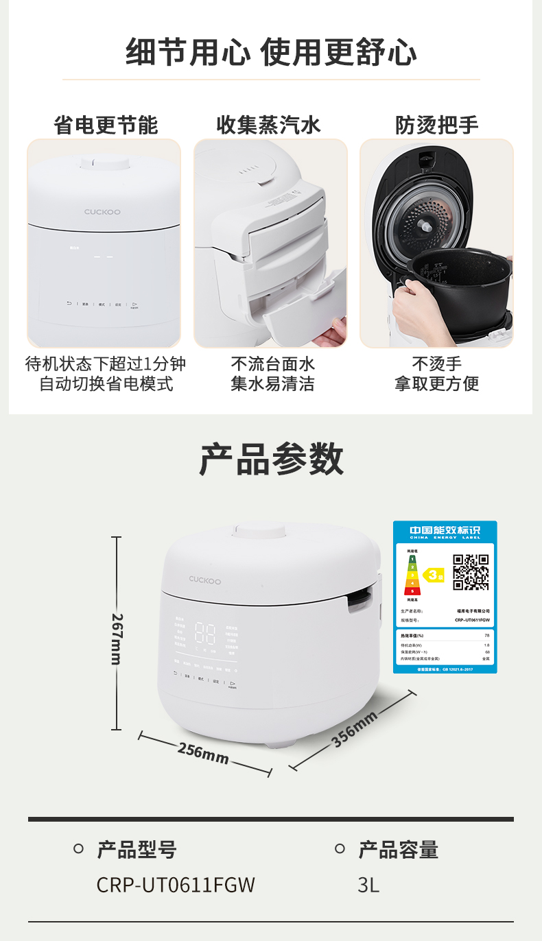韩国CUCKOO/福库 CRP-UT0611FGW 多功能压力电饭煲