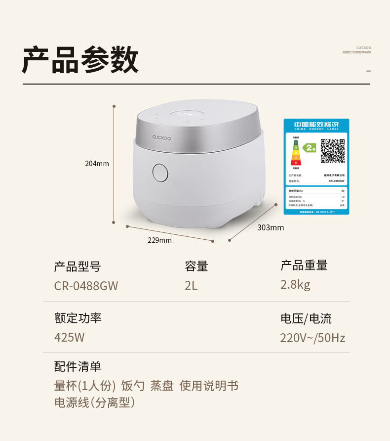 韩国CUCKOO/福库 CR-0488GW 多功能电饭煲